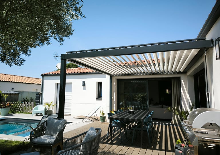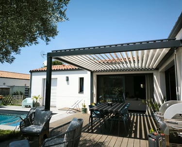 Installation et raccordement électrique Pergola Bioclimatique, avec ajout de Volet Roulant Télécommandé.