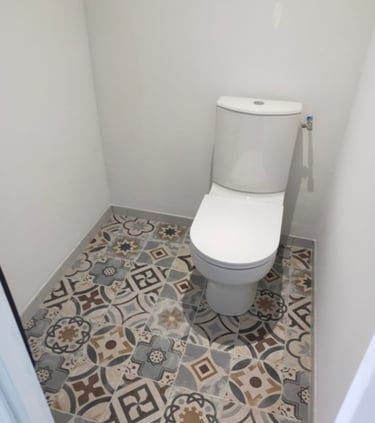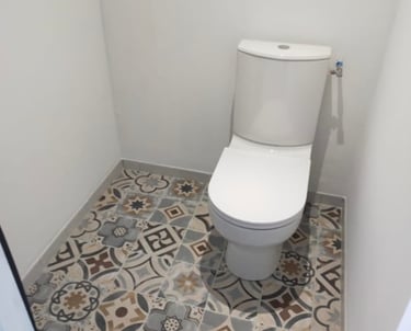 Rénovation complète d'un WC incluant placo, plomberie, carrelage.